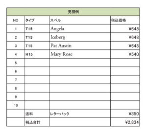内容が決まりましたら、確認の為に下記の見積書を送りします。